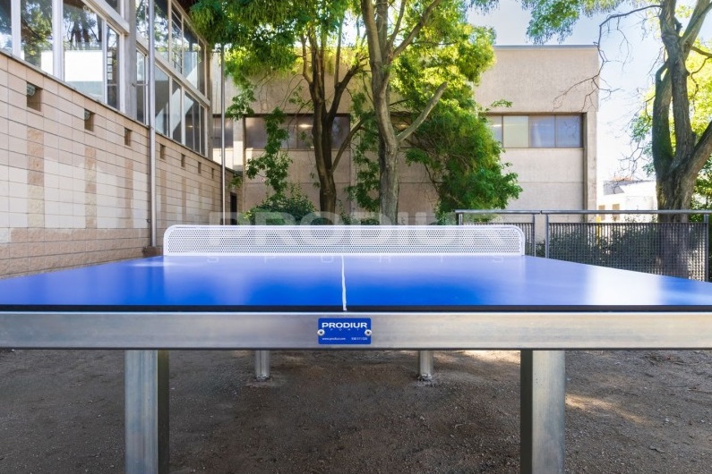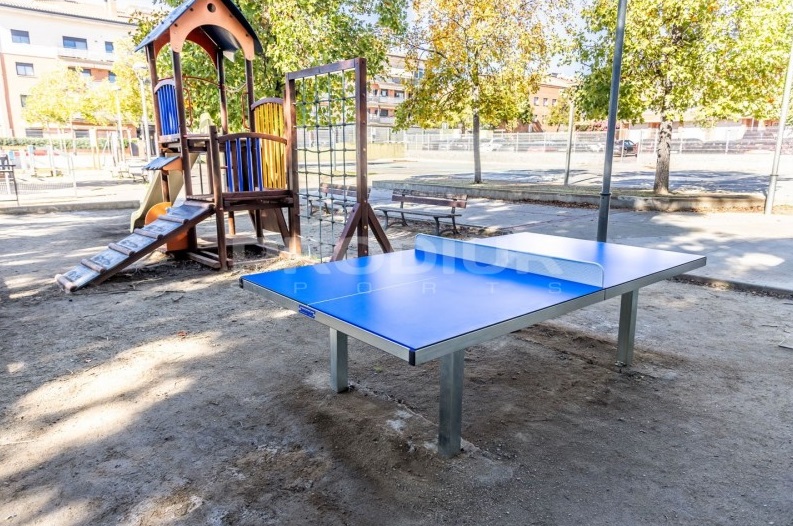 La mesa de ping pong elegida ha sido el modelo Risco, fabricada con materiales de alta calidad que nos aporta una muy buena resistencia en espacios públicos.